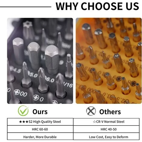 【Hochwertiges Material】Die Schraubendreher-Bits bestehen aus rostfreiem S2-Werkzeugstahl, der haltbarer ist als CR-V-Stahl. Sie erreichen HRC (60-65) Härte und sind nicht leicht zu verformen und zu brechen.