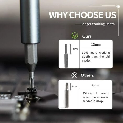 【Professionelles Werkzeugset】 Das Werkzeugset enthält die vertieften Bits. Obwohl die Schraube tief und schmal ist, kann sie leicht entfernt werden. Es enthält auch spezielle Schraubendreher für rostige und gebrochene Schrauben, die für elektrische Bohrmaschinen mit niedriger Drehzahl geeignet sind.