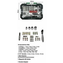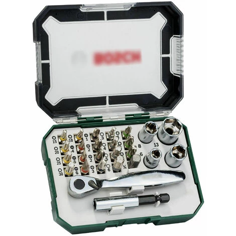 Praktisch empfindlicher Schraubendreher mit kleinem Ratschensatz.