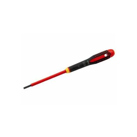 Im Zuge des ERGO-Prozesses entwickeltIsolierte ERGO Schraubendreher für SchlitzschraubenBrünierte Spitze für eine höhere GenauigkeitDreikomponenten-Griff für maximalen Bedienkomfort, weiches Material mit geriffelter Oberfläche für besseren Halt und eine größere KraftübertragungFlache Seitenteile verhindern ein WegrollenIntegrierte AufhängeöseDie richtige Klinge kann problemlos anhand der Farbmarkierung und des Symbols auf dem Griffende identifiziert werdenNo colour identification in extra small handle, small sizes from 2.5 to 3.5Hochleistungs-Stahllegierung, die Isolationsschicht wird direkt auf die Klinge gespritztFür Arbeiten an unter Spannung stehenden Werkstücken, bis 1000 VStückgeprüft und hergestellt gemäß IEC 60900, geprüft im Wasserbad bei 10000 VNormen: ISO 2380/DIN 5264 | Eigenschaften: Abtriebsform: Schlitz, Abtriebsgröße: 10, Klingendicke: 1,6, Schaftlänge: 200, Klingenlänge: 200, Kugelkopf: Nein, VDE-geprüft: Ja, Griffmaterial: 3-Komponenten-Kunststoff, Griff: Längsgriff