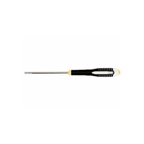 Schraubendreher entwickelt im Zuge des ERGO-ProzessesERGO Schraubendreher aus Edelstahl für Schlitzschrauben3-Komponenten-Griff für maximalen Bedienkomfort, weiches Material mit starrer Oberfläche sorgt für komfortablen Halt und bessere KraftübertragungFlache Seitenteile verhindern ein WegrollenIntegrierte AufhängeöseDie Klinge aus Edelstahl schützt vor Rostbildung, die bei Arbeiten an Werkstücken aus Edelstahl auftreten kann, wenn Werkzeuge aus anderem Stahl verwendet werdenDie richtige Klinge kann einfach durch die Farbmarkierung und das Symbol auf dem Griffende identifiziert werdenNormen: ISO 8764, DIN 5260Standards: ISO 8764, DIN 5260 | Eigenschaften: Schaftlänge: 125 mm, Grifflänge: 122 mm, Spitzenstärke: 1.0 mm, Spitzenweite: 5.5 mm, Gesamtlänge: 247 mm, Gewicht: 70 g, Breite Griff: 27 mm, Klingendicke: 1, Abtriebsgröße: 5,5, Abtriebsform: Schlitz, Klingenlänge: 125, Kugelkopf: Nein, VDE-geprüft: Nein, Griffmaterial: 3-Komponenten-Kunststoff, Griff: Längsgriff