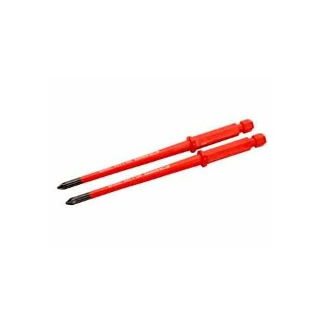 Für Pozidriv-Schrauben, Klingenlänge 100 mm (außerhalb des Griffs)Verbesserten Zugang dank reduziertem Durchmesser, besonders bei versenkten Schrauben oder LüsterklemmenFür Arbeiten an unter Spannung stehenden Vorrichtungen bis 1000 VEinzelhandelsverpackung: 2 Stk. in KunststoffröhreZur ausschließlichen Verwendung mit isoliertem Knarren-Schraubendreher 808060 | Eigenschaften: Länge: 100 mm, Größe: 2, Gewicht: 25 g, Abtriebsform: Kreuzschlitz Pozidrive, Abtriebsgröße: 2, Klingenlänge: 100, VDE-geprüft: Nein, Kugelkopf: Nein, Schaftlänge: 100, Vergütung Klingenmaterial: –