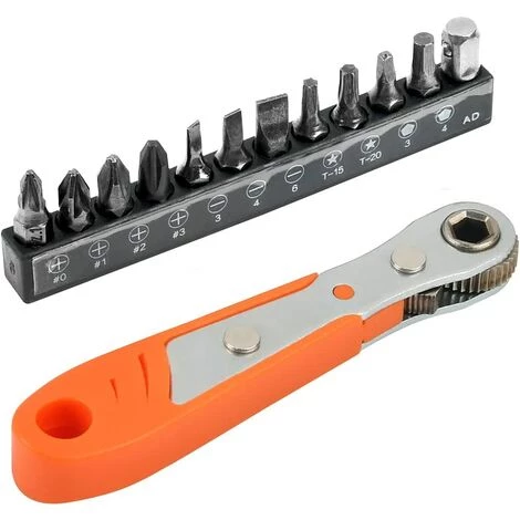 【Mengen und Größe】- 1 * Mini-Ratsche, 12 * Schraubendreher-Bit, Größe: Ratsche: 11 cm, Schraubendreher-Bit: 10 cm , die Schnittstelle ist 6,35 mm.