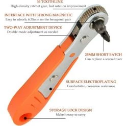 【Umschaltbares Ratschenradsystem und starke magnetische Standardschnittstelle】- Umschaltbares Ratschenradsystem mit 36 Goldstahlzähnen, um Stabilität und präzise Einstellung des Zweiwege-Ratschenrads zu gewährleisten. Standardmäßige 6,35-mm-Sechskantschnittstelle auf gegenüberliegenden Seiten, eingebauter starker Magnet, Sie können den Schraubendreher schnell ersetzen.