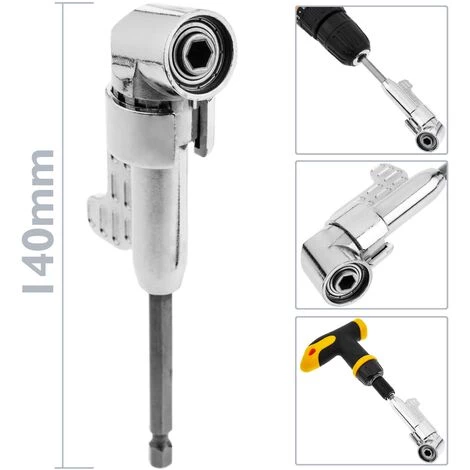 Handschraubendreher mit eckigem Design. 1/4 (6,35 mm) Sechskantadapter für rechtwinkliges Spannfutter. Ermöglicht das Einschrauben in engen oder schwer zugänglichen Bereichen. Es kann mit einem manuellen Schraubendreher mit sechseckiger Spitze, als Adapter an einen elektrischen Schraubendreher oder an einen Bohrer angeschlossen werden.