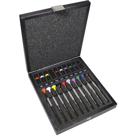 Bergeon-Sortiment: 30081-A10 – 10 Stück im Holzetui = mit Delrin-Kopf, farbig, Korpus Edelstahl – unsere Referenz 359947