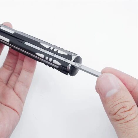 Praktischer Aluminium-Griff mit integriertem, leichtgängigem Magazin (mit Lock Funktion) für bis zu 5 hochwertigen Bit-Klingen mit einem Ø von 4 mm.