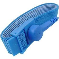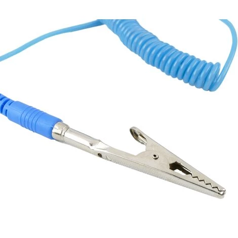 Antistatisches Armband oder antistatisches Armband. Es ist ein Klebeband mit einem Klebeband, um es an den Unterarm zu befestigen. Verbunden mit einem Erdungskabel, das die Entladung von statischer Elektrizität von dem Techniker, der es trägt, ermöglicht. Der Boden ist Krokodilklemmen. Ideal zum Schutz von stromschlagempfindlichen Geräten. Das Armband enthält einen Widerstand von 1 Mega Ohm, Konusin Serie angegeben, um den Kurzschlussstrom zu begrenzen und den Benutzer zu schützen, wenn er ein Gerät oder eine Komponente berührt, die an das Stromnetz angeschlossen sind. Erweiterbares Kabel Verstellbares Armband.