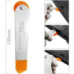 Hebel zum Montieren oder Demontieren elektronischer Geräte wie Smartphones, Tablets, Laptops usw. Hergestellt aus Stahl und Kunststoff, um Beschädigungen oder Kratzer der zu montierenden oder zu demontierenden Komponenten zu vermeiden. Werkzeug des renommierten Herstellers BEST.