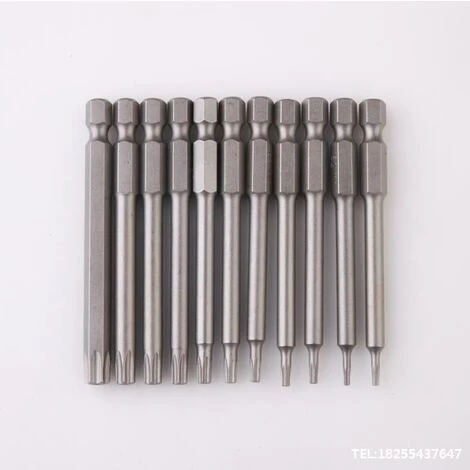 Obermaterial: Magnetische Torx-Bits bestehen aus S2, es ist ein legierter Stahl mit hohem Drehmoment und hoher Härte, Torx-Bits sind gut schlagfest und nicht leicht zu brechen. Sie können sie mit Zuversicht verwenden!