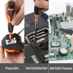 【Verlängerungsstange und Pinzette】 100MM harte Verlängerungsstange hilft Ihnen, den Griff zu verlängern. Es ist sehr bequem, an engen Stellen einzutreten, z eines Host-Computers. 115 mm antistatische Pinzette nehmen leicht kleine Teile von der Leiterplatte auf.