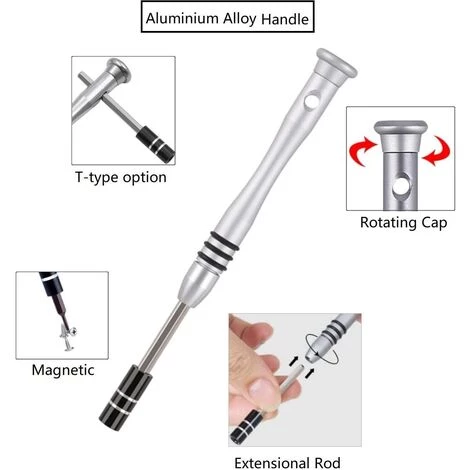 [Professionelles Zubehör]: Griff aus Aluminiumlegierung, ergonomisch und mit Magnetismus, ausgestattet mit Verlängerungsstangen, biegsamen Wellen und elektrischem Antrieb, geeignet für komplexere Demontage.
