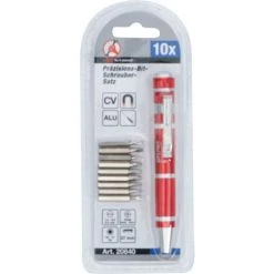 - 3 Bits, Antrieb Außensechskant, Abtrieb: 4 mm, Schlitz 1,5 – 2 – 2,5 mm