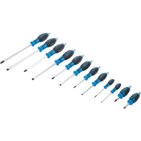 - Schraubendreher Schlitz: 3,2 x 75 mm – 5,0 x 75 mm – 6,0 x 100 mm – 6,0 x 38 mm – 8,0 x 150 mm – 9,5 x 200 mm