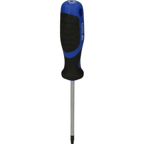 Der BRILLIANT TOOLS Torx Schraubendreher mit Schlagkappe BT034907 mit einer Klingengröße T20, ist der perfekte Problemlöser bei festsitzenden Schrauben. Diese werden durch leichte Schläge mit einem Hammer auf die Schlagkappe gelockert. Durch den Antriebssechskant an der Klinge kann an dieser Stelle zur Unterstützung ein Schraubenschlüssel eingesetzt werden. Der Schraubendreher hat eine Klingenlänge von 10 cm.