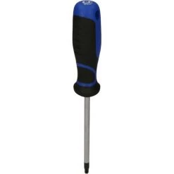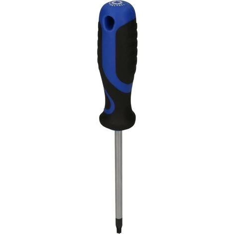 Der BRILLIANT TOOLS Torx Schraubendreher mit Schlagkappe BT034908 mit einer Klingengröße T25, ist der perfekte Problemlöser bei festsitzenden Schrauben. Diese werden durch leichte Schläge mit einem Hammer auf die Schlagkappe gelockert. Durch den Antriebssechskant an der Klinge kann an dieser Stelle zur Unterstützung ein Schraubenschlüssel eingesetzt werden. Der Schraubendreher hat eine Klingenlänge von 10 cm.