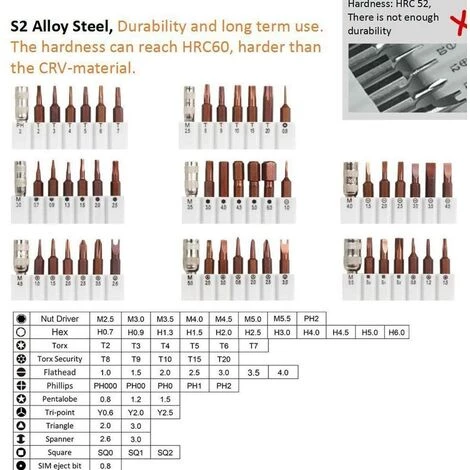 Hochwertiges magnetisches Metall: Alle Bohrer bestehen aus wärmebehandelter S2-Magnetlegierung, einem extrem langlebigen Material, das sich über die Zeit bewährt.