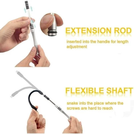 Spezielles Design: Der Schraubendreher kann an schwer zugänglichen Stellen ausgefahren werden. Metallgriff, komfortabler und rutschfester.