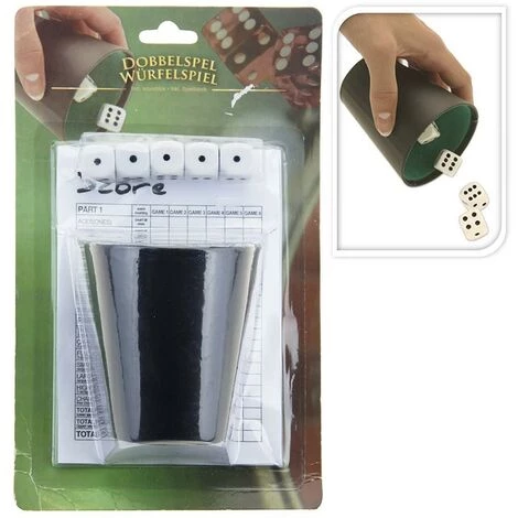 Würfelbecherbecher mit 5 Würfeln und Punkteheft