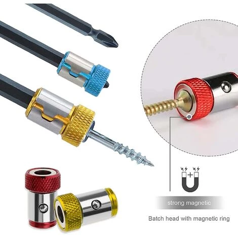 DONTODENT 3 X Abnehmbarer Magnetisierer-Schraubendreherring Aus Legierung, Magnetisierer-Ringhalter, Schraubendreher Für Doppelseitige Schraubendreher-Bits, 1/4 Zoll, 6,35 Mm, Gold/Blau/Rot