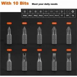 【11 in 1 tragbarer Schraubendreher】10 verschiedene Arten von Schraubendreherköpfen sind im ABS-Griff untergebracht, der sehr leicht zu tragen ist und nicht leicht zu verlieren ist. Inklusive 4 Kreuzschlitzschraubendreherköpfe: PH0/PH1/PH2/PH3, 4 Flachschraubendreherköpfe:SL3.0 /SL5.0/SL6.0, 1 Tri-Point: Y1, 1 Schlüssel: U4, 1 Torx-Sicherheit Geschlecht: T8.