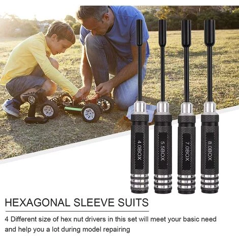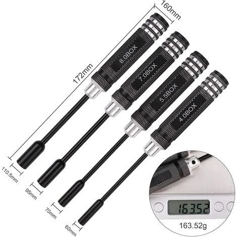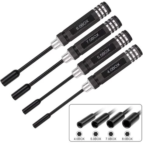 Hobby-Ace 4pcs & nbsp; Schraubendreher mit Sechskantmuttern Schraubendreher-Werkzeug-Set für RC-Hubschrauber RC-Boot-RC-Autos, Metall 4,0 /5,5 /7,0 /8,0 mm NUT-Schlüssel-Schraubendreher