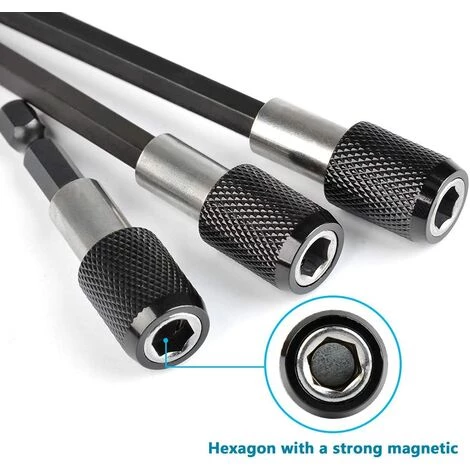 Bohrer mit Sechskantschaft: 1/4-Zoll-Sechskant-Magnetschaft-Verlängerungsfutteradapter Schnellspanner-Stecknuss-Schraubendreher-Bithalter | 60mm/100mm/150mm lang, geeignet für Elektroschrauber, Druckluftbohrer u andere für Elektroschrauber, verlängerter Bit.