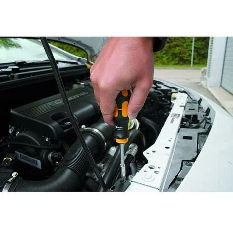 auf Knopfdruck öffnet das integrierte Bit-Magazin für 6 Bits. schneller Zugriff auf verschiedene Bits. magnetischer Bithalter für sicheren Halt der Bits. 100 mm Bajonettklinge, kann auch entnommen werden für den Einsatz im Akkuschrauber etc.. 2-Komponenten-Griff.