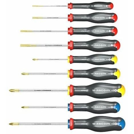 Satz mit 9 Protwist-Schraubendrehern mit Inline-Wärmebehandlung, die 50 % Lebensdauer + 100 % Widerstand bieten. Der Soft Grip-Griff ist auf Komfort ausgelegt und dennoch chemikalienbeständig. Tri-Coating-Behandlung der Klinge (Zink-Nickel-Chrom): 4-mal korrosionsbeständiger. Optimierte Ergonomie des Griffs: + 10 % Paar. Laserbeschriftung: für bessere Verschleißfestigkeit. Abformmechanik per digitaler Fernbedienung: Bessere Anpassung der Schraube durch Erhöhung der Drehmomentübertragung und Reduzierung des Verschleißes. Im Lieferumfang enthalten: 4 Schlitzschraubendreher 2,5 x 75 mm, 3,5 x 75 mm, 4 x 100 mm, 5,5 x 100 mm, 3 Kreuzschlitzschraubendreher 3 x 75 mm, 4,5 x 100 mm, 6 x 125 mm, 2 Pozidriv-Schraubendreher mit den Abmessungen 4,5 x 100 mm, 6 x 125 mm.