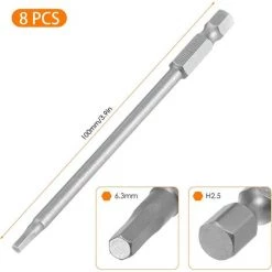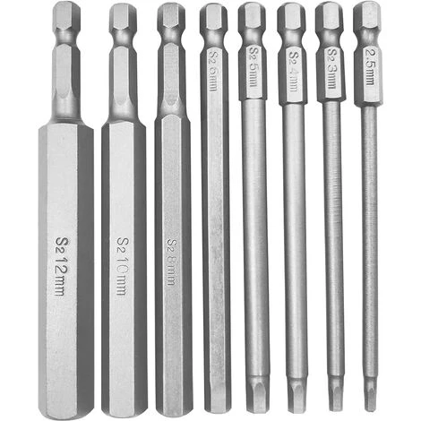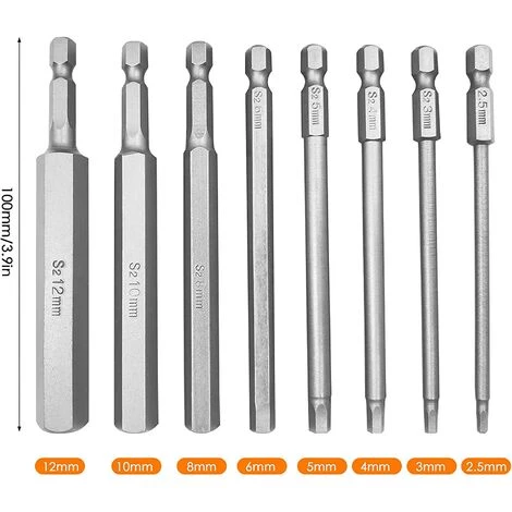 ★ 8-teiliges 4-Zoll-Inbus-Bit-Set mit langem Sechskantkopf. Magnetisierbare Sechskant-Bits (neue Bits mit schwachem Magnet). Nachdem Sie mit einem Magneten magnetisiert wurden, können Sie die Schrauben bei Gebrauch leicht ansaugen.