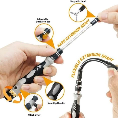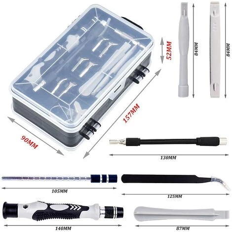 1. Multifunktionswerkzeuge 135-in-1-Schraubendreher-Set, vielseitig, deckt alle Ihre Reparaturanforderungen ab. Es enthält 114 Präzisionsschraubendreher-Bits und ein 21-Werkzeugset mit weichen und harten Verlängerungen, Hebelwerkzeuge mit Brechstange, spezielles Hebelwerkzeug und Saugnapf ist auch mit antistatischer Pinzette und rutschfesten Silikongriffen ausgestattet.
