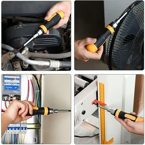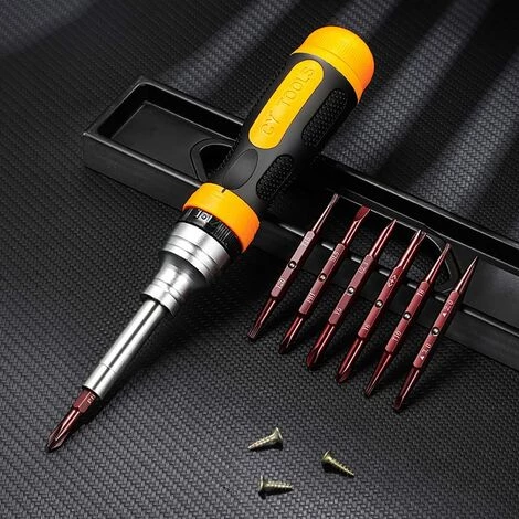 - 【Advantage】Multi-bits Ratcheting screwdriver has an ergonomic handle offering twisting force for three different applications, which enables clockwise,counter-clockwise ratcheting and locked positions.