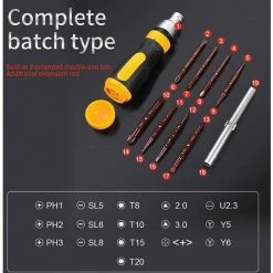 - 【Product Description】1 PC Screwdriver Handle with 8PC Double-ended Bits. Stored in handle for convenient access and carry: PH3/SL8, Y6/+, PH2/SL6, Y5/U2.3, T8/T10, PH1/SL5, T15/T20, ▲2.0/▲3.0.