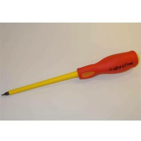 Schraubendreher mit Griff aus Zweikomponentenmaterial mit 1000V Isolation für Elektriker, garantiert maximale Sicherheit, Zuverlässigkeit und Wendigkeit im Gebrauch Hergestellt nach den technischen Eigenschaften, die für bestimmte Anwendungsfunktionen erforderlich sind, gemäß IEC 60900:2004 und von V.D.E. zertifiziert für Arbeiten unter Spannung bis 1000V Abmessungen 4 x 100