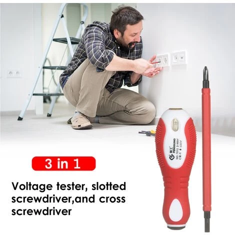 Der Mehrfachschraubendreher kann als Spannungstester, Schlitzschraubendreher und Kreuzschraubendreher dienen. 3 in 1 Design bringt Ihnen viel Komfort.