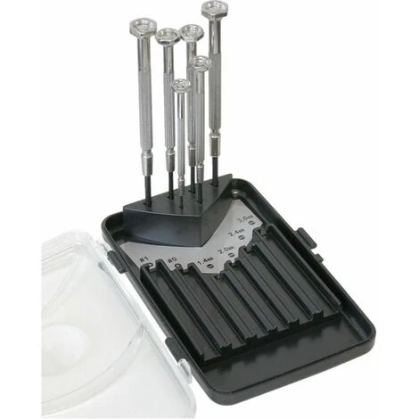 Uhrmacher-Schraubendreher-Satz • Ausführung: Klingen aus Chrom-Vanadium-StahlGriffe aus Metall mit Drehkappeverchromt • Lieferung: in Kunststoffbox