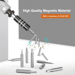 Hochwertiges magnetisches Material: Der Chrom-Vanadium-Schraubendreherkopf hat eine Härte von 55–60 HRC und der Bitabschnitt kann auf Knopfdruck nach oben gedreht werden, um den Zugang zum Bit zu erleichtern. Mit einer geformten Memory-Matte, Sie können kleine Schrauben leicht halten und müssen sich beim Zerlegen oder Zusammenbauen keine Gedanken über fehlende Schrauben machen, was Ihre Arbeit effizient macht. Langlebig und ausgestattet mit verschiedenen Kopfgrößen und umfangreichem Zubehör für den täglichen Bedarf.