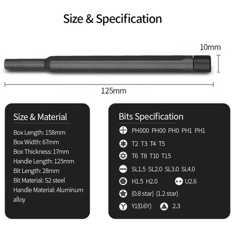 Die Magnetbasis hält jedes Bit fest und die Bits fallen nicht ab, selbst wenn Sie das Gehäuse verkehrt herum platzieren.