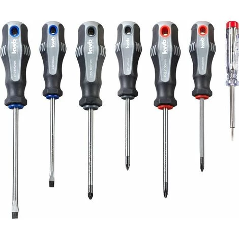 CV-Stahl, 3-Komponentenheft für optimale Kraftübertragung und rutschfreies Arbeiten, Klingen aus CV-Stahl, matt verchromt, mit brünierter Präzisionsspitze. Schnell erkennbares Farbleitsystem zeigt die gewünschte Klingenform.
