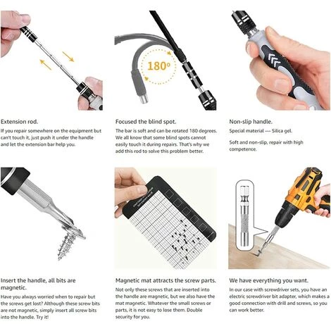 - Vielseitig: 135-in-1-Präzisions-Schraubendreher-Set kann zur Reparatur von elektronischen Geräten wie Mobiltelefonen, Laptops usw., Laptops und Kameras verwendet werden , sowie Haushaltsgeräte wie Fernseher, Klimaanlagen, Kühlschränke und Autos. Zum Anpassen und Reparieren von Brillen und Uhren ist dies das ideale Reparaturset.