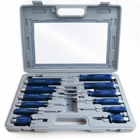 Mit diesem 12-teiligen Schraubendreherset haben Sie immer das passende Werkzeug beim Schrauben zur Hand. Es umfasst jeweils 6 Kreuz – und Schlitz – Schraubenzieher mit unterschiedlichen Klingenbreiten und -längen.