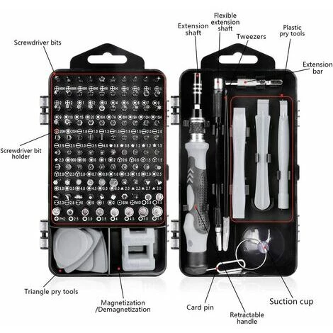 Hochwertiger After-Sales-Service : 115 in 1 Präzisions-Schraubendreher-Kit enthält 98 Schraubendreher und 17 Demontageteile, Schraubendrehergriffe, Zangen, Saugnäpfe Kunststoffhebel, Magnete, Magnetpads und weiteres Zubehör. Sie müssen arbeiten, es kann Ihre Bedürfnisse erfüllen. Ihre unterschiedlichen Bedürfnisse.