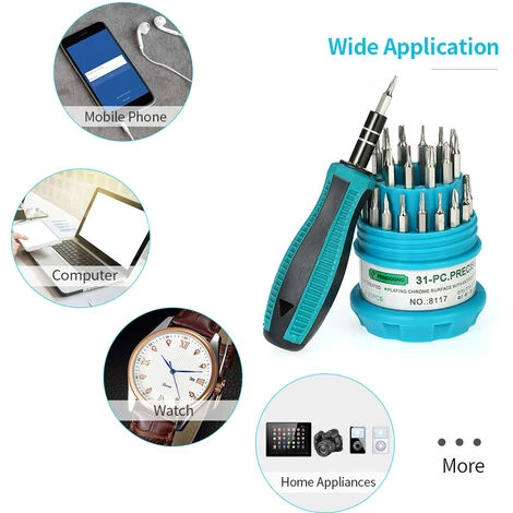 Dieses 30-in-1-Schraubendreher-Set ist das notwendige Werkzeug für verschiedene Arten von Elektroarbeiten oder anderen Reparaturarbeiten. Dieses Präzisions-Schraubendreher-Set ist zum Reparieren, Öffnen oder Zerlegen von Mobiltelefonen, Computern, Uhren, Laptops, Android-Telefonen, Laptops, Tablets und Spielkonsolen gedacht.
