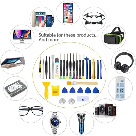【Hoch und kostengünstig】Reparatursätze helfen Ihnen, Ihr Telefon, Tablet, MacBook zu zerlegen, um den Bildschirm zu ersetzen, zu reinigen Innenraum, Batterie ersetzen usw. Sie können sie auch verwenden, um Ihre Brillen, Uhren und andere Geräte zu reparieren. Sein hoher Preis macht es zu einem idealen Geschenk für Heimwerker, Techniker, Elektronikbegeisterte usw.