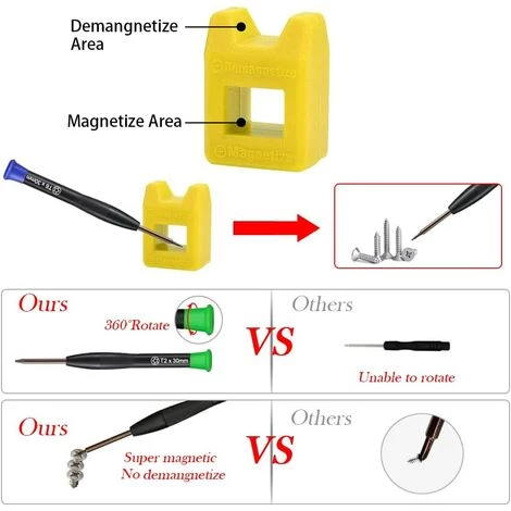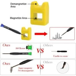 【Magnetisierer】 Das gelbe quadratische Werkzeug ist in Ober- und Unterteil unterteilt Bieten Sie mehr Komfort für Ihre Wartung. Legen Sie einfach Werkzeuge wie Schraubendreher in den unteren Raum, und die Werkzeuge sind magnetisch und können kleine Schrauben usw. anziehen. und setzen Sie den Schraubendreher auf die obere Fläche und es wird wieder normal. Es dient auch als kleine Plattform zum vorübergehenden Anbringen kleiner Schrauben, die Sie bei Reparaturen entfernen.