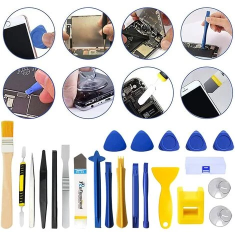 【1 Box】 30 Reparaturwerkzeuge: 8 Arten von Präzisionsschraubendrehern, 10 Arten von Öffnungshebelwerkzeugen (Metall/Kunststoff), 5 Stück Dreiecksplatten, 1 Stück Magnetisierer, 1 Stück Bürste, 1 Stück Schaber, 2 Stück Saugnapfstücke, Pinzette 1 Stück. Es ist außerdem mit einer kleinen transparenten Werkzeugbox ausgestattet, die bequem zu verstauen ist, den Verlust von Werkzeugen besser verhindert und leicht zu tragen ist. Mit vielen Arten und Größen von Werkzeugen ist immer das Richtige dabei.