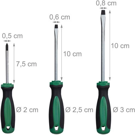Das 6er Schraubendreher-Set ist genau das Richtige für alle Heimwerker. Je drei Schlitz- und Kreuzschraubenzieher in verschiedenen Größen sorgen dafür, dass beim Aufbauen von Schränken oder dem Montieren von Regalen stets das passende Zubehör zur Hand ist.