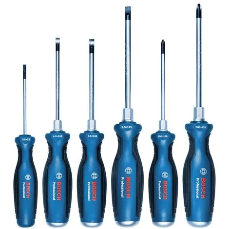 Bosch Professional 6 tlg. Schraubendreher Set (Kreuz- und Schlitzschraubenzieher, durchgehende Stahlklinge und Stahlkappe)