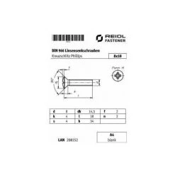 SONSTIGE DIN 966 Linsensenkschrauben M 8 X 10, Kreuzschlitz Phillips, A4 Blank