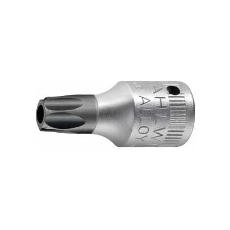 6,3 mm (1/4 )-Vierkantantrieb · mit Bohrung in der Antriebsspitze · für Schrauben mit Innen-TORX®-Profil (auch mit Sicherungsstift) · (TORX® TAMPER RESISTANT) · Chrom-Alloy-Stahl · verchromt · DIN 3120 / ISO 1174-1 Weitere technische Eigenschaften: · Material: Chrom-Alloy-Stahl | Eigenschaften: Länge: 28, Antrieb: 1/4, Ausführung: Stecknuss